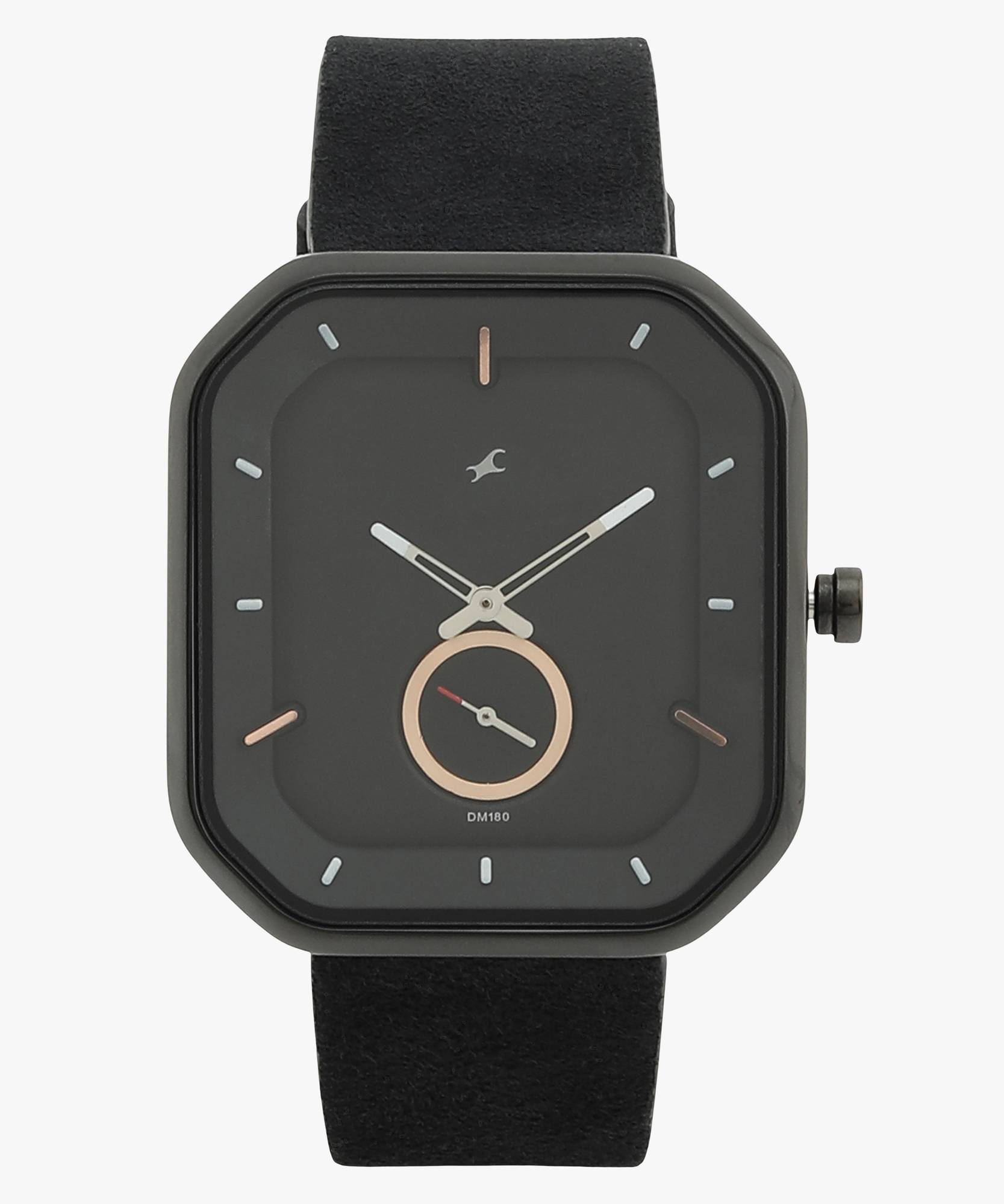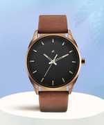 5 ATM/ 50 m Water resistance. Leather Strap. Stainless steel back cover. High precision quartz analogue movement.