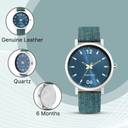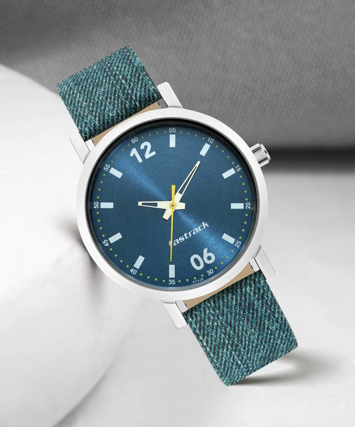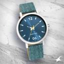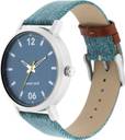 5 ATM/50 m Water resistance. Leather with Denim Print on Strap. Stainless steel back cover. High precision quartz analogue movement.