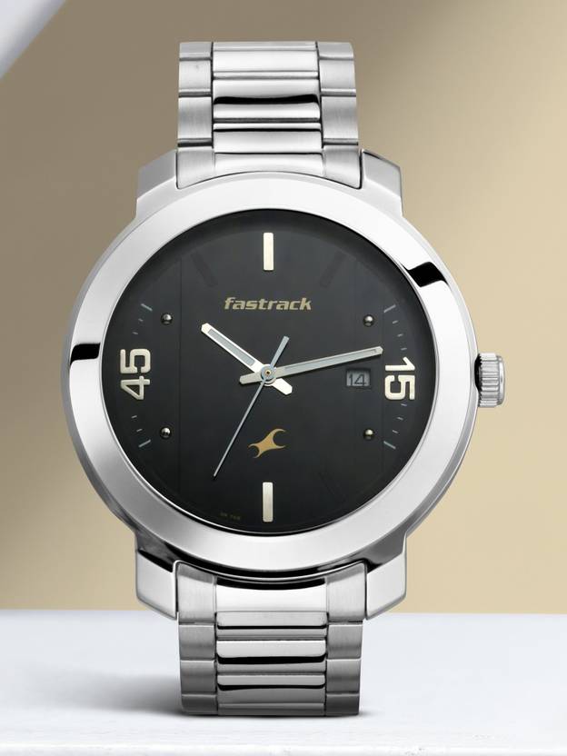 Fastrack Bare Basics Fastrack Bare Basics with Date Black Dial Silver SS Strap Analog Watch - For Men