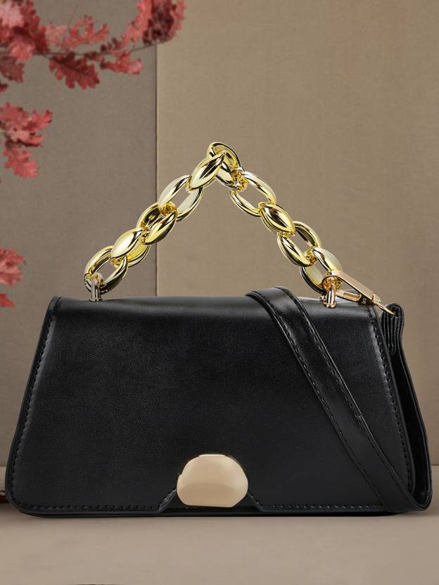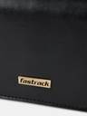 This classic Fastrack satchel is a timeless addition to your accessory collection. Crafted from durable black PU leather, it exudes sophistication and style. The sleek design features a gold metal chain detail for a touch of luxury, while the detachable sling strap offers versatility in carrying options.