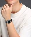 Possessing a round dial, this fashionable watch has a stainless steel back case and a sporty leather strap which make it a sturdy construct. The buckle clasp of this timepiece allows you to easily and quickly fasten it around your wrist.