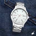 Fastrack With Date White Dial Silver Stainless Steel Strap