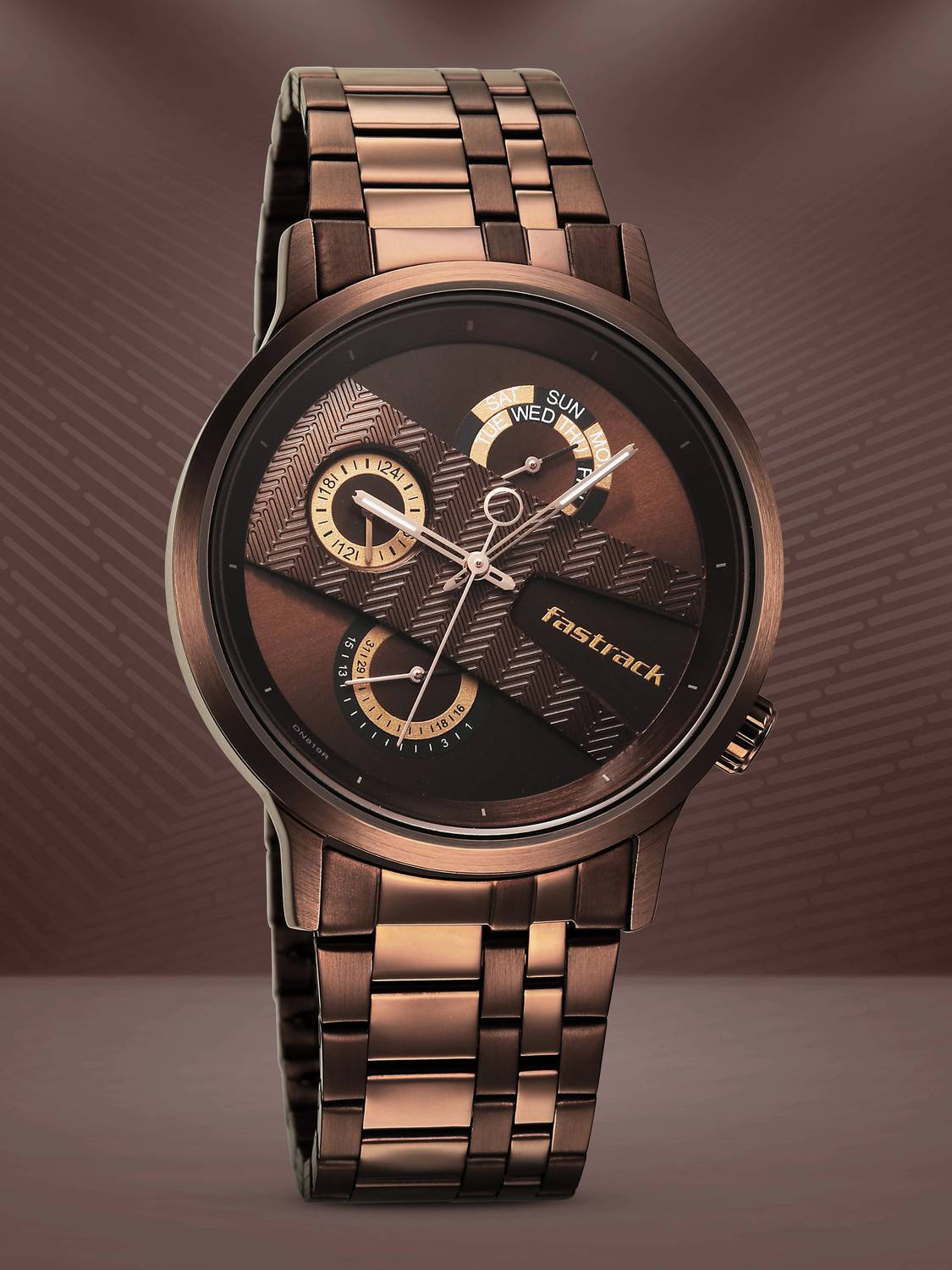 Fastrack Fastrack Exuberant Multifunction Brown Dial Brown SS Strap Analog Watch - For Men NT3301QM01