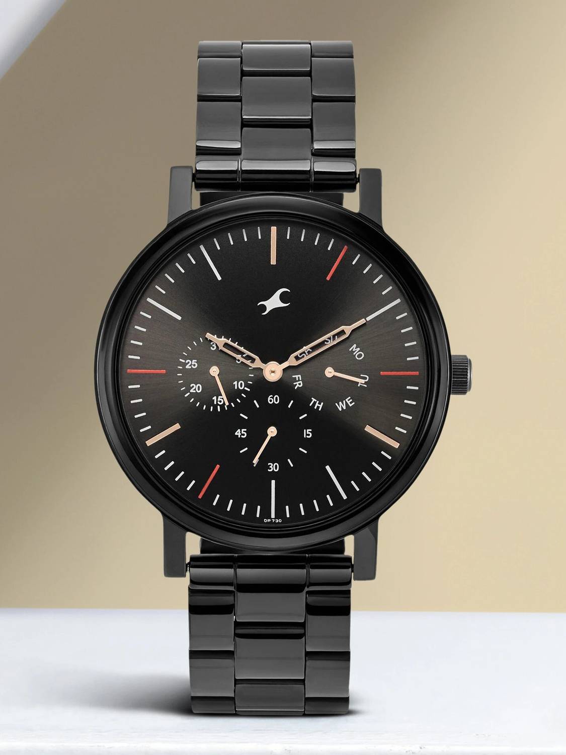 Fastrack Multifunction Black Dial Black Stainless Steel Strap