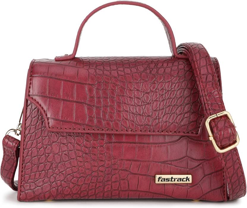 Bold texture, timeless flair - say hello to the Fastrack Croco Luxe Satchel, designed to keep up with your weekday hustle and weekend plans. This structured satchel is wrapped in croco-embossed faux leather with a rich maroon finish, making it your go-to for adding instant edge to any outfit. Sleek gold-tone hardware adds just the right amount of shine without going over the top.