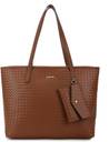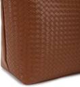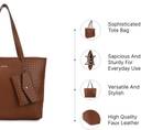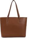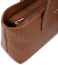 Sleek tan leather tote featuring a sophisticated embossed texture and spacious interior. Designed with sturdy straps and a minimalist silhouette, perfect for professional or everyday use.