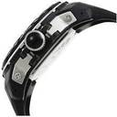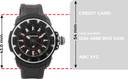 Wear this watch and enjoy the comfort of a polyurethane strap that is composed of a mixture of plastic and rubber, aiding the comforts of the wearer. The round dial is bound by a stainless steel back case that has the hours of the day imprinted on it, instead of on the dial. It has a clasp buckle and an extra large crown.