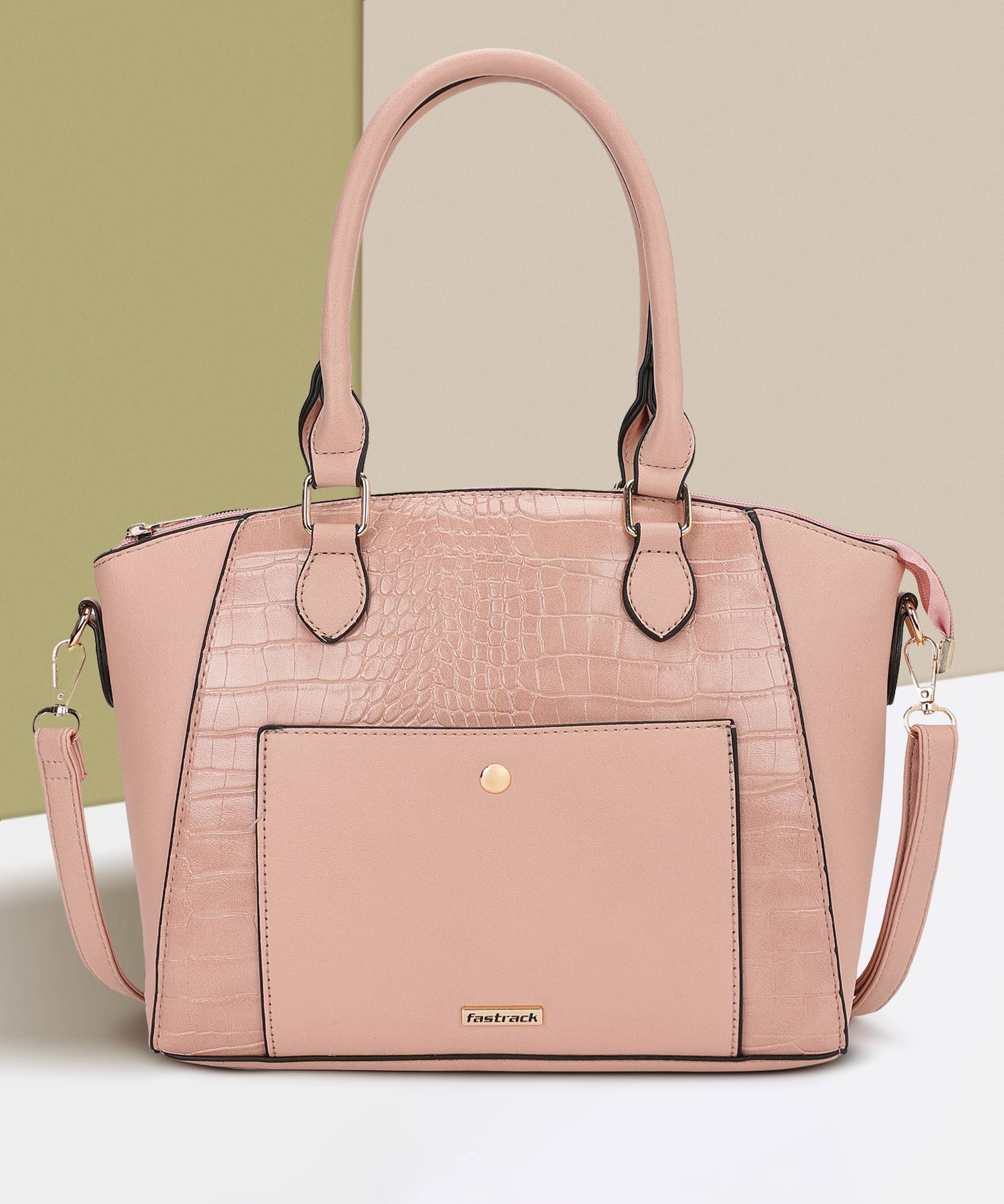Elevate your style with the Fastrack Croco Textured Structured Satchel. This sophisticated bag combines functionality with fashion, crafted from high-quality PU material and featuring an eye-catching croco texture. Its structured silhouette ensures a professional look, while the large zipper main compartment provides ample space to organize all your essentials. The two sturdy handles offer comfort and convenience, while the detachable sling strap allows for versatile carrying options. Perfect for work, travel, or daily use, this satchel adds a touch of luxury and practicality to any outfit.