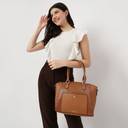 Elevate your style with the Fastrack Croco Textured Structured Satchel. This sophisticated bag combines functionality with fashion, crafted from high-quality PU material and featuring an eye-catching croco texture. Its structured silhouette ensures a professional look, while the large zipper main compartment provides ample space to organize all your essentials. The two sturdy handles offer comfort and convenience, while the detachable sling strap allows for versatile carrying options. Perfect for work, travel, or daily use, this satchel adds a touch of luxury and practicality to any outfit.