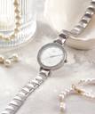 Discover the Vyb Enigma, a luxurious steel watch designed for the ultimate party look. Featuring a round studded case, a lustrous mother of pearl dial, and a striking chunky pyramid-shaped strap, this watch adds a touch of bold sophistication to any evening ensemble.
