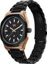 The Fastrack Vyb Limitless watch is a bold expression of modern luxury, featuring a textured black dial that adds depth and dimension to its design. The rose-gold markers and hands stand out against the sleek black background, offering a striking contrast that is both eye-catching and sophisticated. The watch's dynamic aesthetic is complemented by a two-tone bracelet, enhancing its contemporary appeal. Perfect for those who seek to elevate their style with a statement piece, this watch seamlessly transitions from day to night, making it an essential accessory for any occasion.