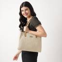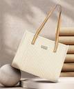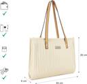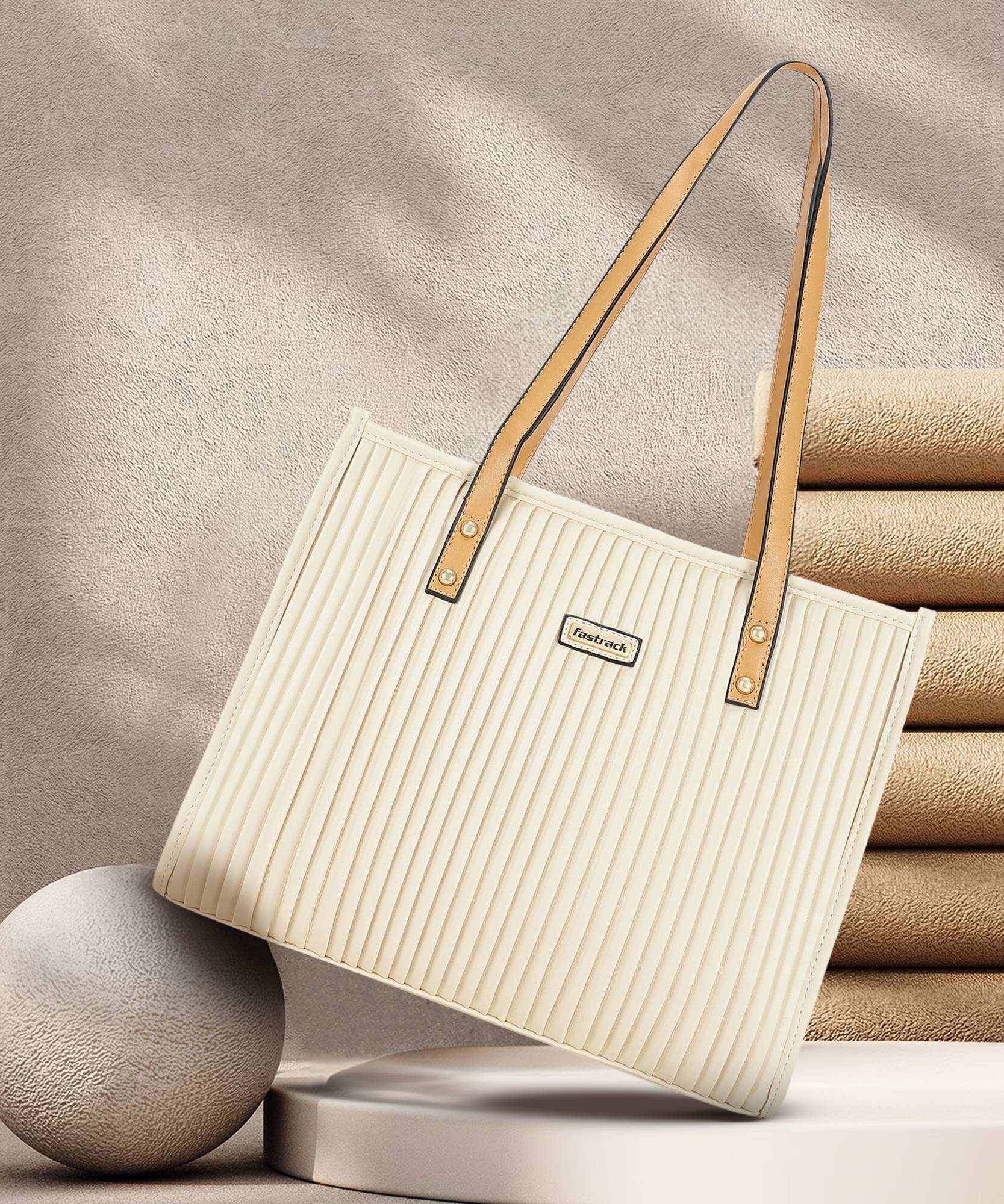 This Self-Striped Large Tote Bag is a stylish and functional accessory designed for women who need a spacious and organized bag for their daily needs. The unique self-striped design adds a touch of personality and style, while the spacious main compartment with a zip closure ensures your belongings stay secure. The bag also features 2 external pockets and 3 internal pockets for convenient organization. The two sturdy handles make it easy to carry and transport your essentials.
