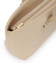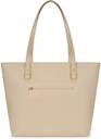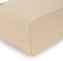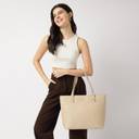 Versatile Appeal: The totes soft beige faux leather, pebbled texture, and sleek gold-tone hardware complement any outfit.