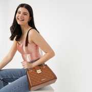 Step up your style game with this Fastrack metal accent textured satchel. This satchel is all about combining trendy details with practical features. The textured body adds a touch of sophistication, while the metal accents give it a modern edge. For extra security, it features both a flap closure and a top zip closure, ensuring your belongings stay safe and sound. Inside, you'll find inner slip pockets for easy storage and organization. Perfect for everyday use, this satchel is designed to keep you stylish and organized wherever you go.
