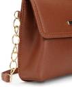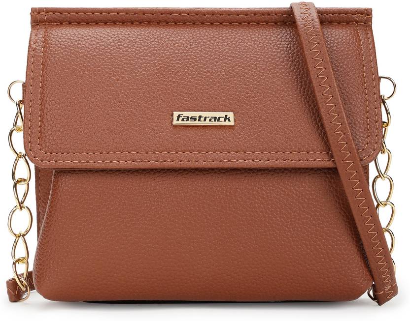 Go for that effortlessly chic look with this trendy tan sling bag. It's sized just right to hold your everyday essentials and even has a zippered pocket on the inside. What's more, there's a designer strap with chain detailing to give you a few more style points.