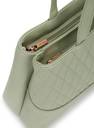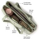 It combines elegance and functionality in one sleek design. The quilted detailing adds texture and sophistication, while the structured silhouette ensures the bag retains its shape. With a quick access pocket at the back and two spacious zipper compartments, this bag provides ample organization for all your essentials, making it perfect for everyday use or travel.