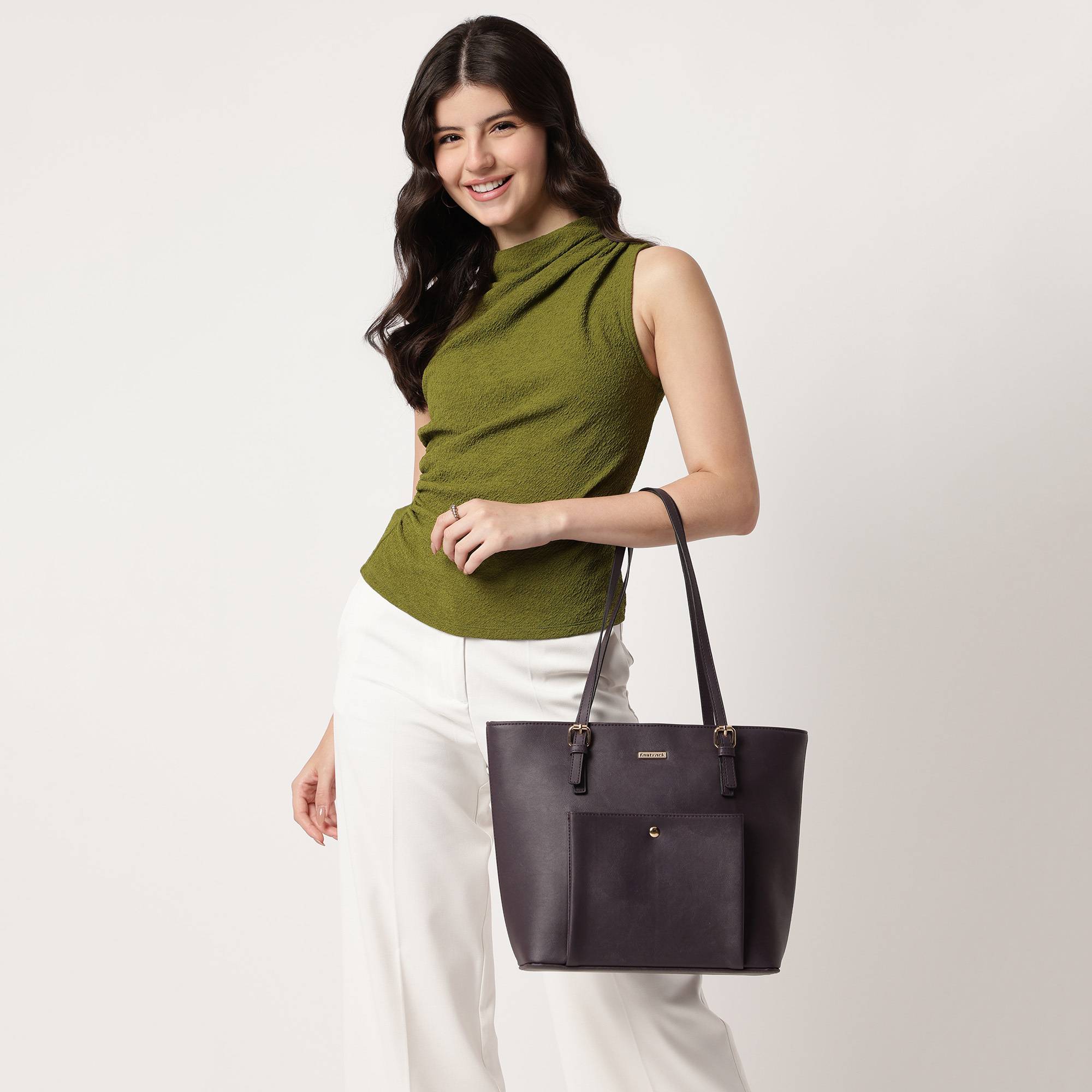 Big on space, bolder in style - meet the Fastrack Purple Tote, made for days when you've got places to be and things to carry. Crafted from durable faux leather in a rich purple hue, this tote combines clean design with subtle edge through buckle-detailed shoulder straps and a sleek silhouette.