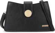 Add a touch of modern sophistication to your look with this Fastrack structured sling bag. Crafted from high-quality faux leather, it features a sleek, structured design that elevates any outfit. The flap closure with metal accents adds a trendy, eye-catching detail. The main compartment with a zip closure keeps your belongings secure, while the interior zip and slip pockets help you stay organized. The adjustable sling belt allows for a comfortable, customized fit. Perfect for everyday use or special occasions, this sling bag is a must-have for your accessory collection.