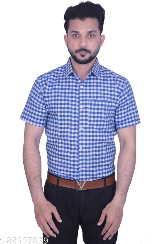 Fatimaisha Men Checkered Formal Dark Blue, White Shirt