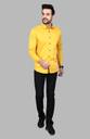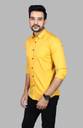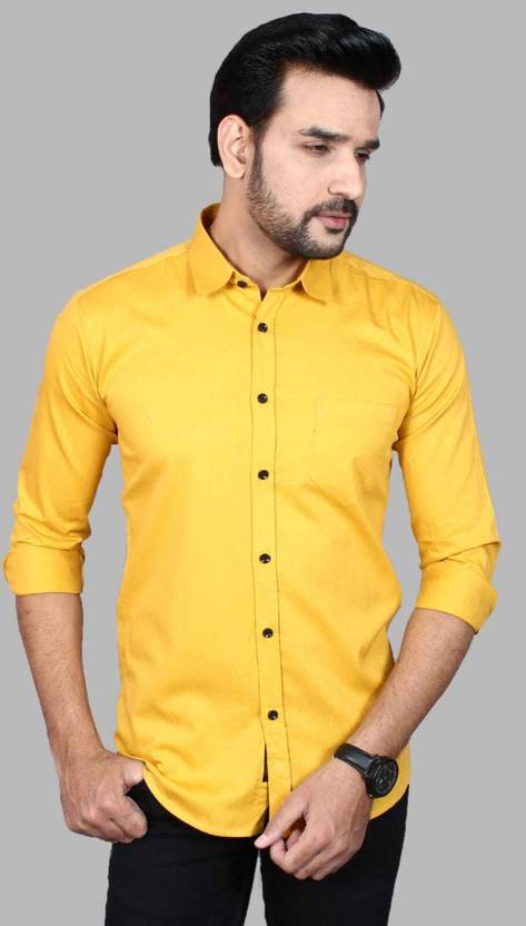 This is a men's navy blue, full-sleeved shirt featuring a classic collar and a button-down front. It includes a single patch pocket on the left chest. The sleeves are styled rolled up to the forearms, and the shirt is made from a smooth, solid-colored fabric, offering a clean and versatile look. This shirt can be paired with jeans, chinos, or trousers for various casual to semi-formal occasions.
