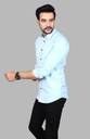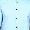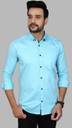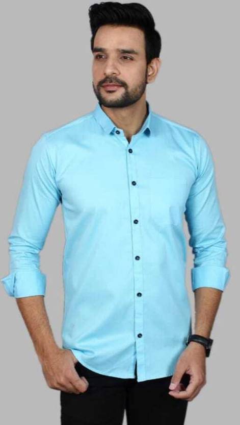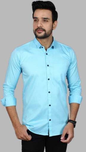 This is a men's navy blue, full-sleeved shirt featuring a classic collar and a button-down front. It includes a single patch pocket on the left chest. The sleeves are styled rolled up to the forearms, and the shirt is made from a smooth, solid-colored fabric, offering a clean and versatile look. This shirt can be paired with jeans, chinos, or trousers for various casual to semi-formal occasions.