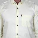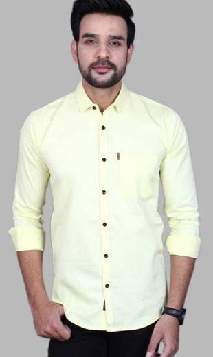 This is a men's navy blue, full-sleeved shirt featuring a classic collar and a button-down front. It includes a single patch pocket on the left chest. The sleeves are styled rolled up to the forearms, and the shirt is made from a smooth, solid-colored fabric, offering a clean and versatile look. This shirt can be paired with jeans, chinos, or trousers for various casual to semi-formal occasions.