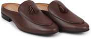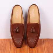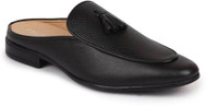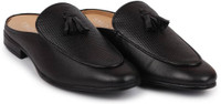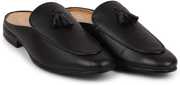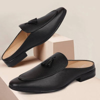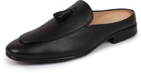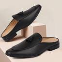 FAUSTO Back Open Leather Party Formal Comfortable Outdoor Slip On Shoes Tassel Mojaris For Men (Black , 6)