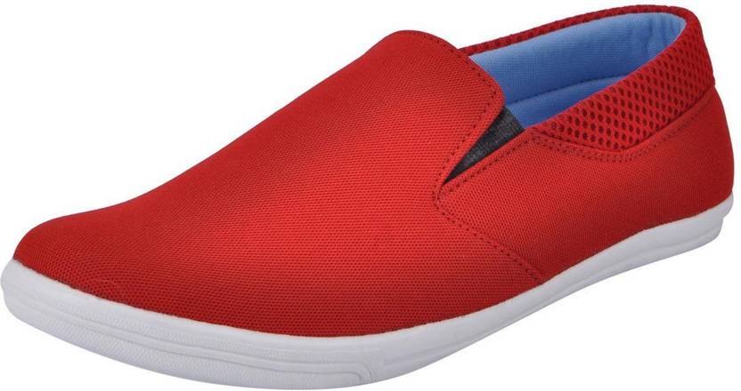 FAUSTO Slip On Shoes for Casual Outfit|Sneakers|Fashion|Comfort|Flexible TPR Sole Loafers For Men (Red , 40)