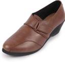 FAUSTO Fashion Hook and Loop Formal Office Platform Heel Wedges Slip On For Women (Brown , 7)