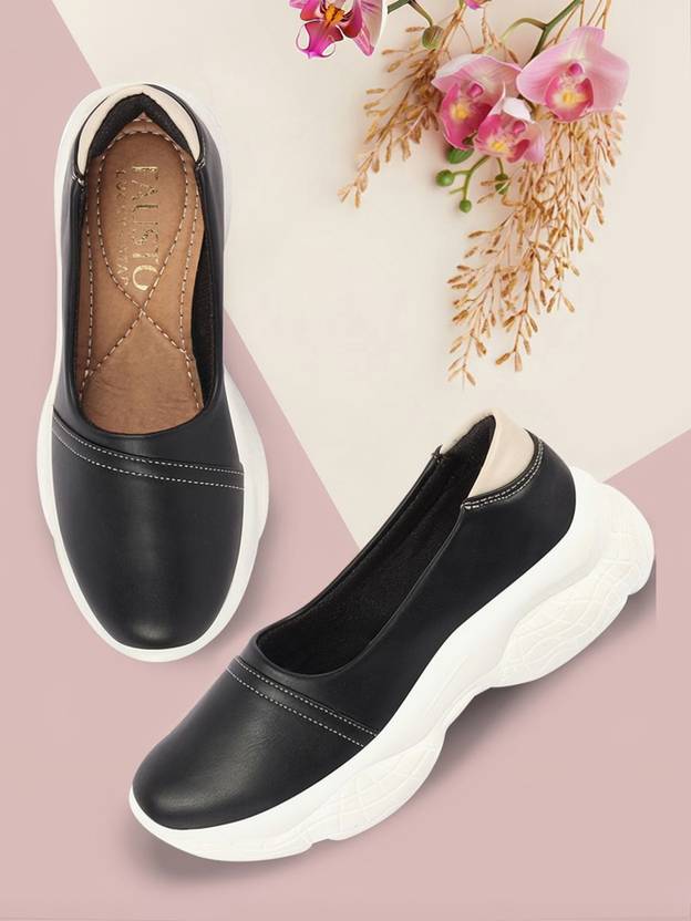 FAUSTO Fashion Stitched Design Slip On Shoes Loafers For Women (Black , 3)