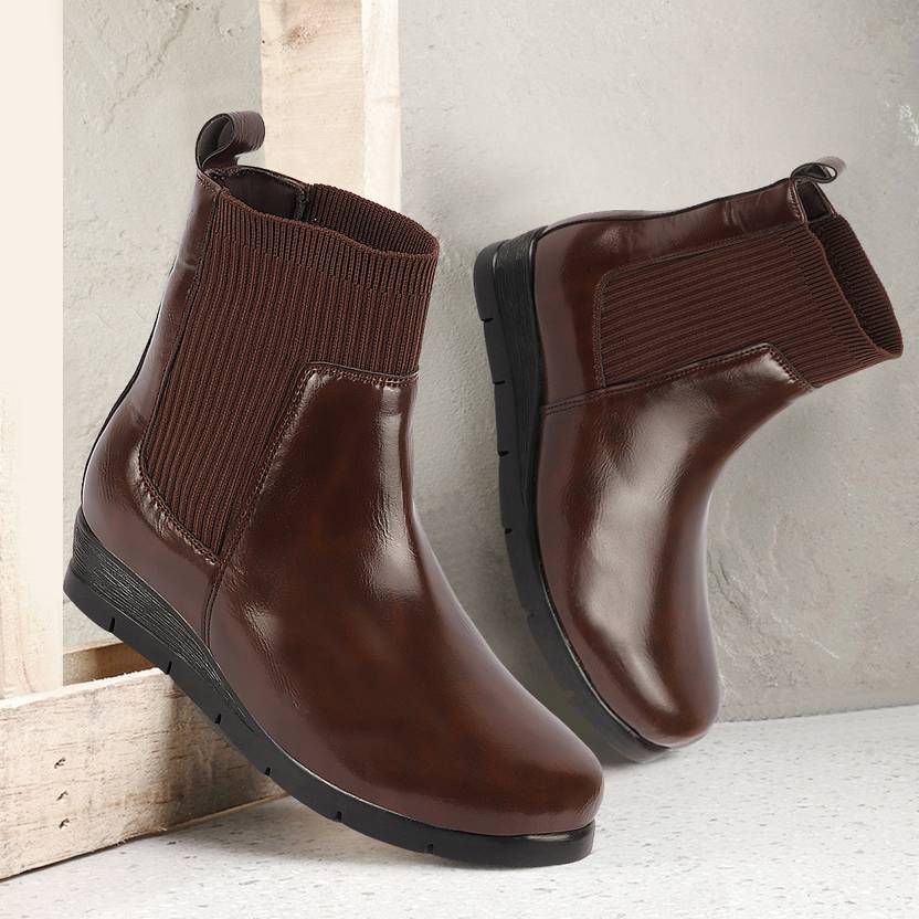 These women's high ankle broad feet chelsea boots modern look to keep you comfortable in all weather. This trendy pair of boots addition for add to your pretty collection. Its sole is made of thermoplastic rubber. It comes with a comfort width and has a pull-on closure. This footwear for all kinds of outings like casual, outdoor and holiday.
