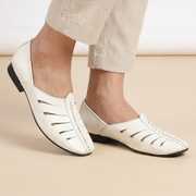 FAUSTO Ethnic Wedding Party Laser Cut Design Slip On Juttis and Mojaris For Men (Black , 10)