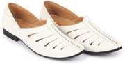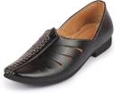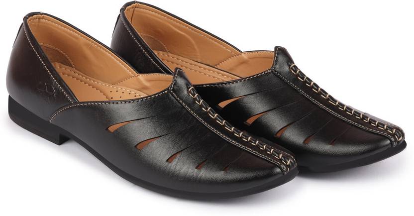 FAUSTO Ethnic Wedding Party Laser Cut Design Slip On Juttis and Mojaris For Men (Black , 10)
