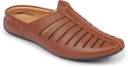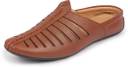 FAUSTO Laser Cut Design Back Open Evening Party Slip On Shoes Mojaris For Men (Tan , 11)