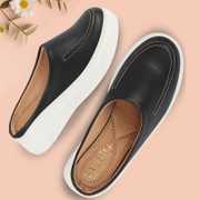 Outdoor Fashion Stitched Design Open Back Platform Heel Slip On Casual Shoes
