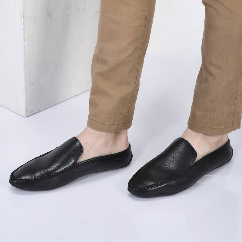 Stitched Block Design Pattern Back Open Slip On Shoes