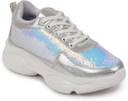 FAUSTO Stylish Lace Up Embellished Sneakers|Walking Lightweight Casual shoes Sneakers For Women (Silver , 5)