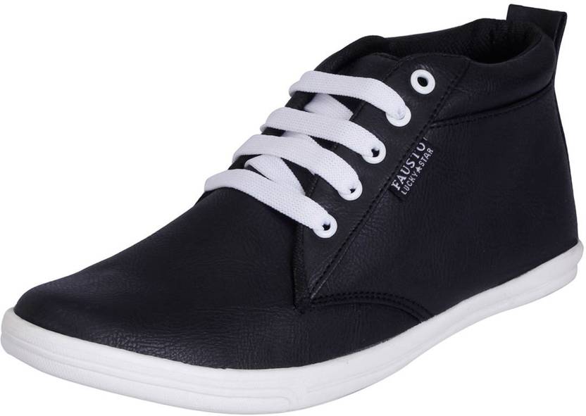 This black sneaker for men by FAUSTO is perfect for weekend styling This sneaker for man has a synthetic upper and mesh lining for ultimate comfort stability and breathability The rubber outsole further assures slip resistance and durability Team this with denims and T-shirt to flaunt your attitude