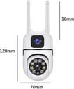 your home or business security with Mini, a revolutionary dual lens/screen 2in1 indoor camera designed to deliver unparalleled surveillance capabilities. Equipped with dual 5-megapixel lenses, this camera boasts Full HD 1920 resolution, ensuring every detail is captured with exceptional clarity and precision. Experience enhanced visibility, day or night, with advanced color night vision technology, providing vivid monitoring even in low-light conditions. With intelligent human detection, the camera accurately distinguishes between human activity and other movements, minimizing false alarms and delivering reliable alerts when it matters most. Engage in seamless communication with built-in two-way talk functionality, allowing you to interact with visitors or deter intruders directly from your smartphone or tablet. Stay informed and connected with instant notifications whenever motion is detected, ensuring you're always in control of your space. With a 360-degree panoramic view, Mini provides comprehensive coverage of your surroundings, eliminating blind spots for enhanced security and peace of mind.Keep your home safe and secure with this advanced home security camera, designed for 24/7 monitoring and peace of mind. Featuring high-definition video quality, night vision, and motion detection, this camera captures clear footage even in low light. It supports real-time alerts to your smartphone, two-way audio for communication, and cloud storage options for recording. Easy to install and compatible with WiFi, this home security camera allows you to monitor your home, kids, and pets from anywhere, ensuring complete safety and convenience for your family.