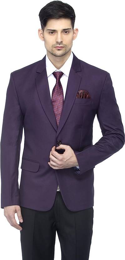 MAHAMAYA FABRICS & FASHION Solid Single Breasted Formal Men Blazer (Purple)