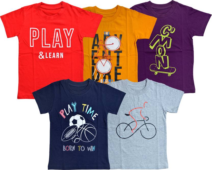 FAZZA Boys Printed Pure Cotton Regular T Shirt (Multicolor, Pack of 5)
