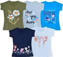 FAZZA Girls Graphic Print Pure Cotton Regular T Shirt (Multicolor, Pack of 5)