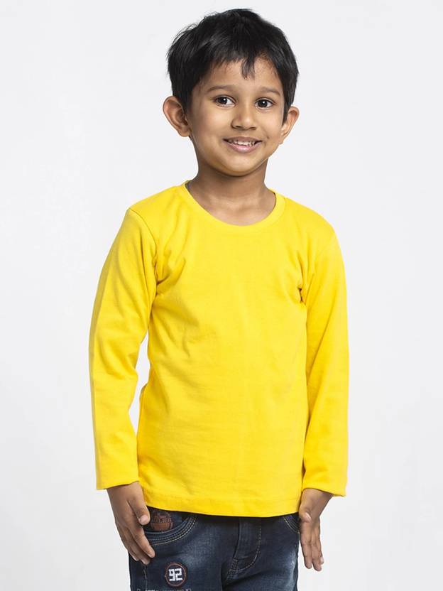 FRISKERS Boys Solid Cotton Blend Regular T Shirt (Yellow, Pack of 1)