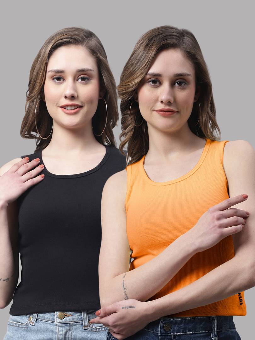 FBAR Casual Solid Women Black, Orange Top