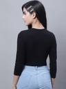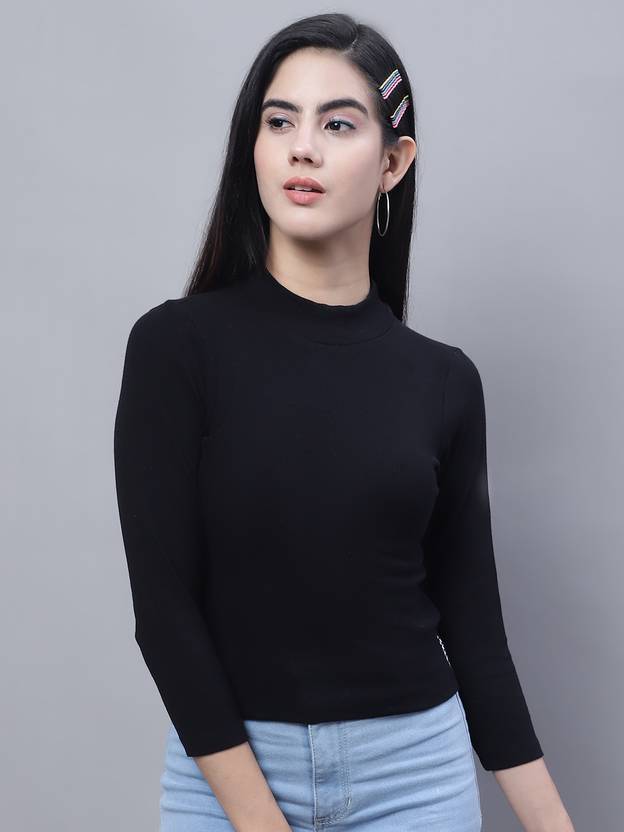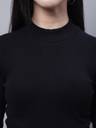 Black Solid Casual Knitted cotton Rib Crop top, Has a Turtle neck and Long Sleeve direct manufectured by FBAR.