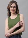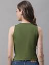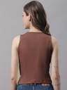 Brown Olive Green Solid Casual Knitted cotton Rib Crop top, Has a round neck and No Sleeve direct manufectured by FBAR.