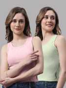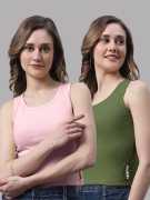 Pack of 2 Casual Sleeveless Solid Women Brown, Green Top