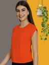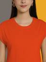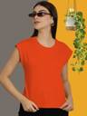 Orange extended sleeves top features a trendy cropped length, a classic round neckline, and extended sleeves that reach the elbows or beyond for a relaxed, oversized look. Made from soft, breathable fabrics like cotton or jersey, it's perfect for casual wear, offering both comfort and style.