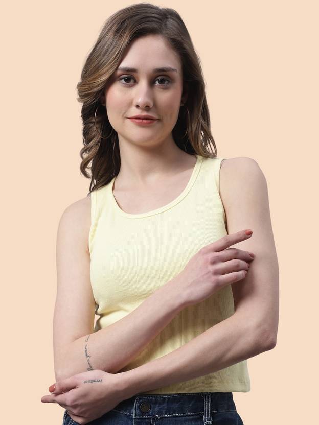 FBAR Casual Solid Women Yellow Top