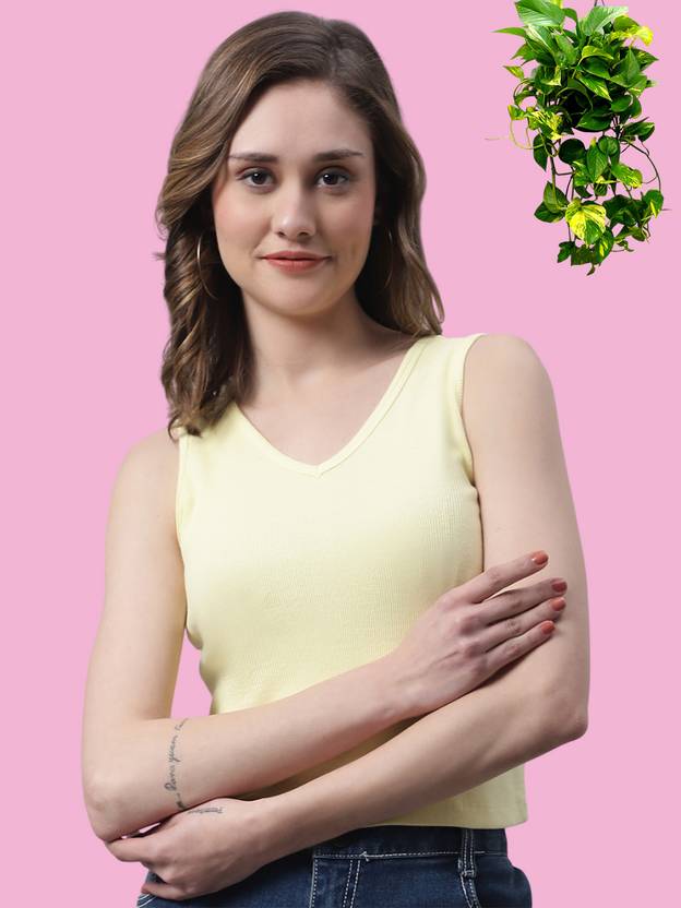 FBAR Casual Sleeveless Solid Women Yellow Top